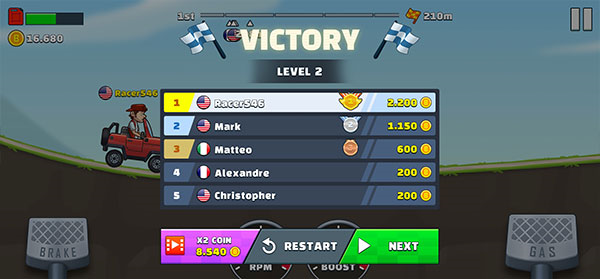 通过获得诸如硝基、火箭和辅助油之类的小玩意来提高你的游戏分数;