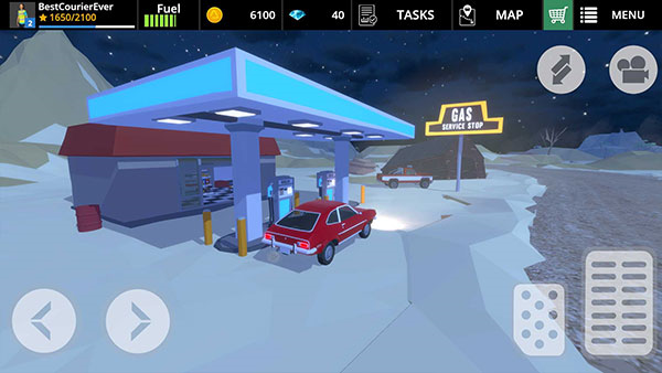 菜单栏上方分别为个人信息、汽车燃料、金币钻石、任务以及地图和商店,新手玩家可以先点击“任务”,根据提示完成任务,获得经验。