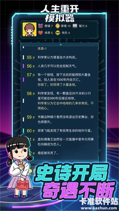 3、即便如此,游戏中还是会有一些随机的事件会影响寿命,就要看玩家的运气如何了。