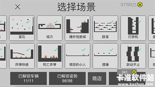 4、火柴人有十三根骨头。短短的时间越多,得分越高。合理使用车辆和非常奇怪的姿势会使您跌倒。