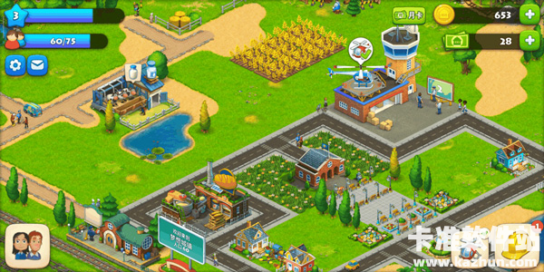 这款游戏操作简单,在游戏开始时,会有动画操作演示,玩家在游戏开始时可以随着动画操作进行种植庄稼,建造房屋建筑,农副产品生产等,还可以用直升机将产品运往居民的住处,完成订单。