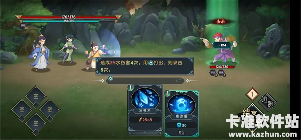 4、在遭遇敌人会自动进入战斗,玩家需通过卡牌回合制战斗玩法消灭敌人;