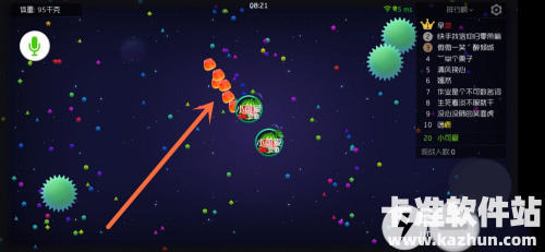 3、随后将变大的球球分成多个球球,要想快速合体时,应该先点击下中间的一个球,接着点击下吐球,使中间的球球变得更大。这也就是所谓的中吐。
