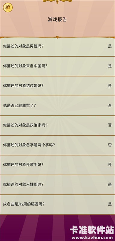 读心大神是一款休闲回答测试类手游,游戏也叫网络天才,玩家们将和阿拉丁神灯的灯神开启提问,心理想象一个人或者物,根据问题进行回答,在有限的问题内灯神会进行猜测,游戏内有着千万种的可能,根据自己的角色来经住灯神的考验,游戏的操作非常的简单易上手,尝试破解灯神的魔力,感受一骑绝尘的魅力,还有大量的玩法等待着玩家们来体验。