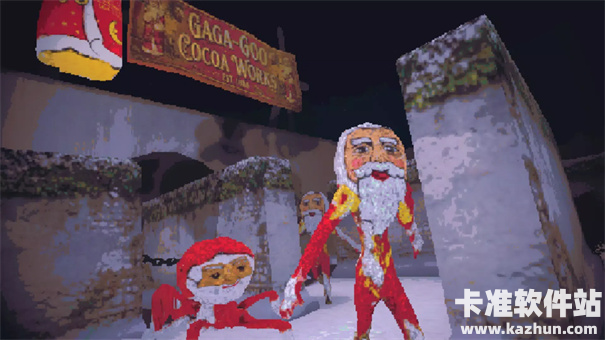 1、生存恐怖动作:巧妙地使用你的电击枪,暂时使进化后的巧克力圣诞老人怪物失去行动能力。
