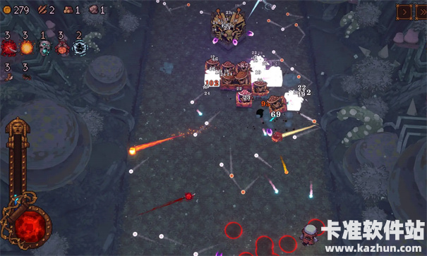 1、背景设定于陨石毁灭的球比伦都城,玩家化身寻宝猎人深入无底深坑,以竖屏弹珠射击机制击溃上方涌来的敌人,需权衡直射速攻与弹射 AOE 的策略。