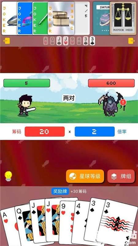 1、玩家需通过筹码 × 倍率计算最终伤害,策略性地选择最优牌型输出。