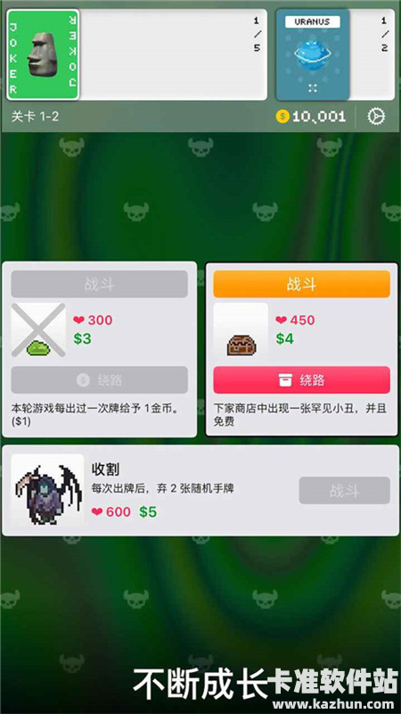 选择“战斗”击败可获得金币并购买道具,或者“绕路”获得一个Buff