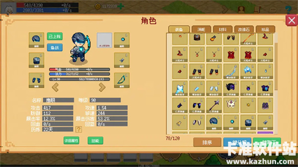 2、点击右上角的角色可以查看自己的属性、职业以及拥有的装备。
