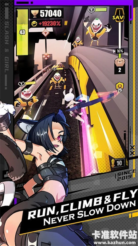 跑酷游戏太平淡?那就加速冲刺!增加了加速创新操作,下滑再下滑,加速再加速!感受在极限速度下的连续操作感和打击感吧!独特Fever模式,古典与杀戮,展现反差中的暴力美学。与此同时,游戏的关卡末尾,有轻松熊在迎接一路奋战的疯狂少女,暴力以外,可爱也必不可少!