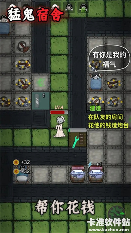 6、另外将门和炮台清除之后,注意一定不要清除床铺,我们在把门和炮台清除之后【人类】角色的升级速度就会大幅度下降。我们可以等到门和炮台清除的差不多了之后再来清除床。一个房间一个房间依次清理即可。