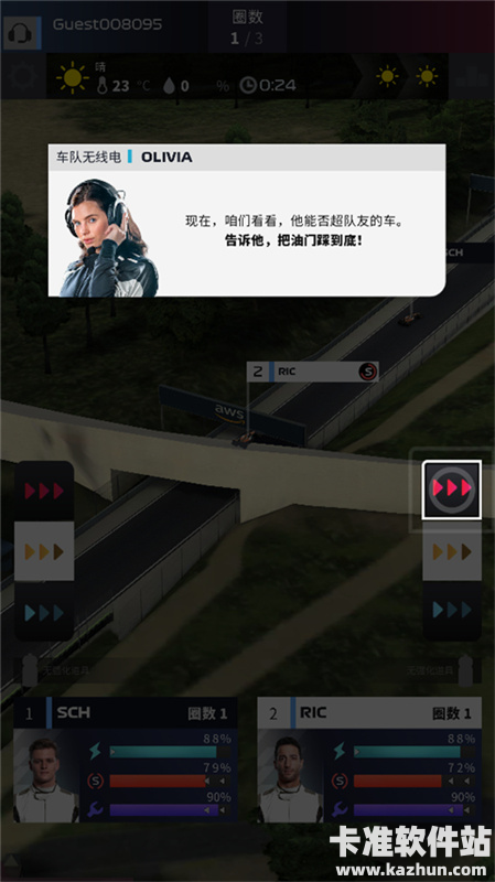 3、然后进入比赛,这是玩家的两位车手,他们在比赛时,玩家可以对他们进行管理;
