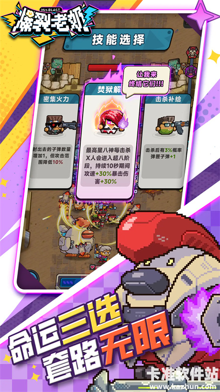 爆裂老奶收录了CS1.6、终结者、第一滴血等千禧年间众多经典游戏与影视作品中的角色形象,且可以通过局外升级的方式来提升战斗力,结合局内随机刷新的增益更可构筑多样化的流派Build,让玩家每次挑战中感受丰富多彩的游戏体验。