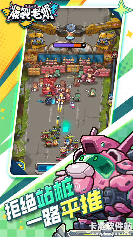 爆裂老奶是一款像素风格的割草策略类手机游戏,融合了射击与塔防两种玩法元素,玩家将扮演一位为了找回自己孙子进入游戏世界的奶奶,集结包含CS1.6中的L337、凤凰战士以及T-800、兰博等影视作品经典人物角色,在快节奏的战斗中击溃一波又一波怪物,杀穿游戏世界,将孙子逮捕回家。爆裂老奶融合了Roguelike元素,玩家每一次战斗中能够获取的角色卡牌以及增强角色实力的增益都将随机刷新,让玩家每次战斗都可以成为一次崭新的体验,感兴趣的小伙伴们千万不要错过,快快下载这款爆裂老奶体验吧!