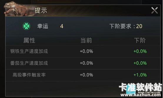 然后不同的事件,以及不同的回答,似乎会增长不同的属性值,分别是【士气】、【幸运】和【学识】三种属性,只是我一直不知道有啥用。