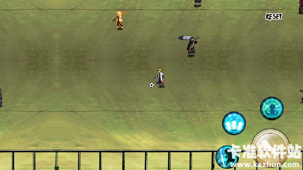 1、玩家自制以经典ip《火影忍者》为主题的火影忍者足球,与鸣人、佐助等火影角色一同踢球。