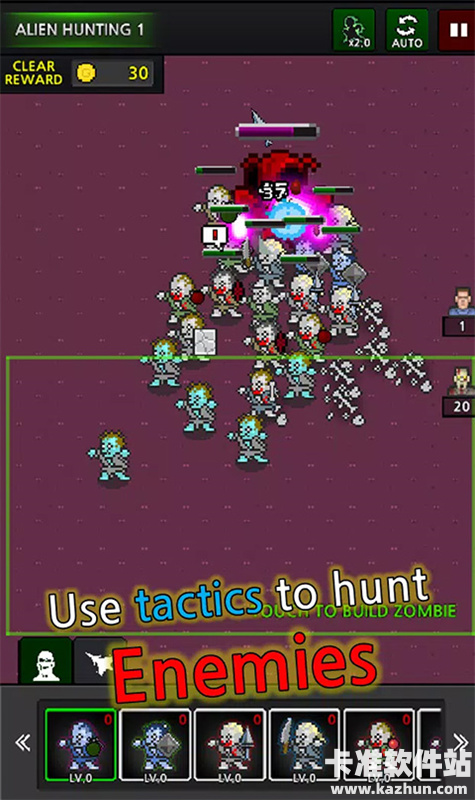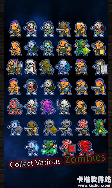 复古像素画风搭配Q版搞怪僵尸形象,合成进化玩法轻松解压,解锁军团增益,游戏融合了各种的元素,兵种进化和各种的装备,碎片化时间就能够开启冒险,将自己的军队提升战斗能力,击败更多的对手!