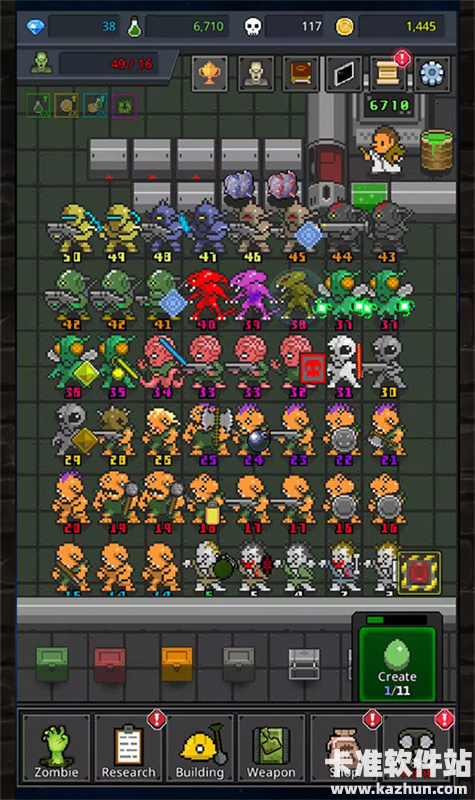 3、通过合成僵尸,创建自己强大的僵尸部队
