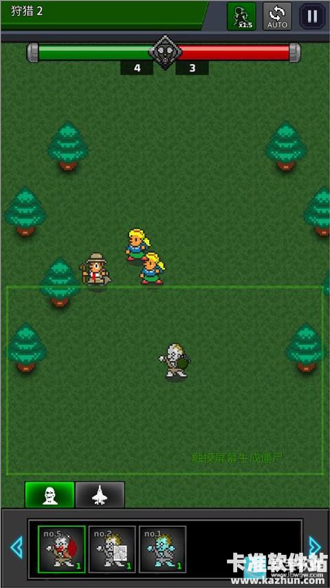 4、点击右下角的狩猎开始冒险,狩猎过程是自动进行的,玩家只需要在绿色方框中点击生成僵尸