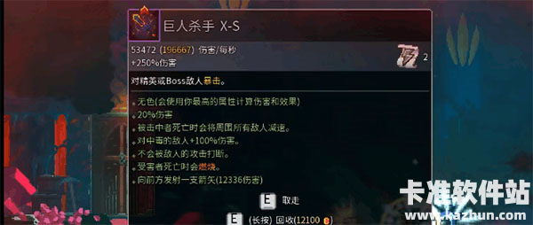 在第一次战胜巨人后会获得巨人杀手的图纸,玩家可以在收集家处通过消耗细胞进行制作。也可以选择再次挑战巨人BOSS,第二次及以后打赢就会直接掉落巨人杀手武器,属性则会比较随机,多试几次总能获取符合玩家要求的武器。