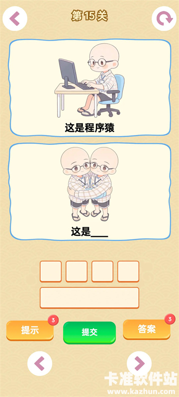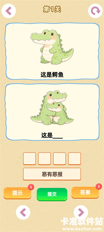 谐音梗游戏是一款趣味十足的休闲类手机游戏,以众多流传在互联网上的谐音梗为关卡题目核心,玩家将在一系列关卡中根据不同的动物等图象提示填出谐音词汇,随着玩家的关卡进程推进,难度也将越来越高,也更为考验玩家的智慧。除此之外,谐音梗游戏也提供了很容易获取的提示以及直接提供答案等选项,让玩家在遇到困难时也可以轻松通过关卡。喜欢谐音梗游戏的玩家赶紧下载吧!