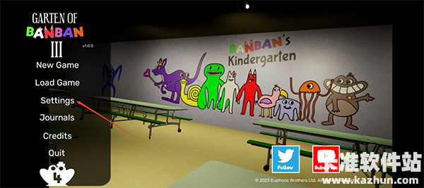 1、下载后打开游戏选择settings。