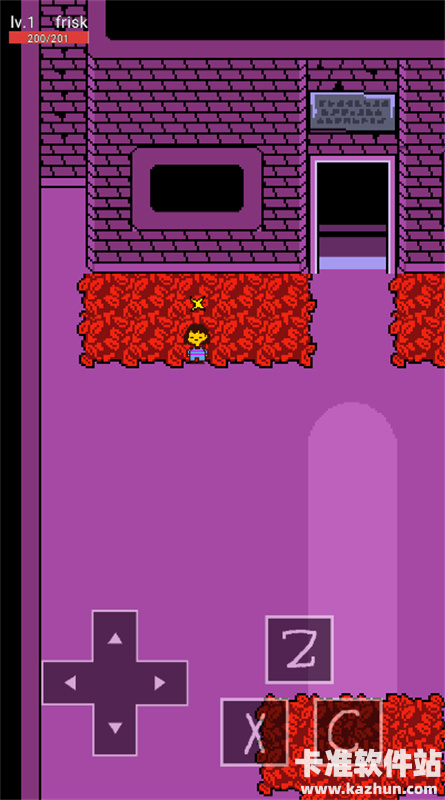 2、跟随着Toriel前往至遗迹的入口,在花丛当中会遇到第一个保存点(星星)。Toriel不假思索地告诉你这里就是你的新家。进入到第一个存档点北面的房间,Toriel会亲自把这个房间的谜题给解决,所以直接穿过北面的门即可。随后进入到东西向并且有两条小溪长廊上,Toriel需要你去拉下墙上有标记的杆子,一共需要拉下两个,那么东面的尖刺陷阱就会被移除。