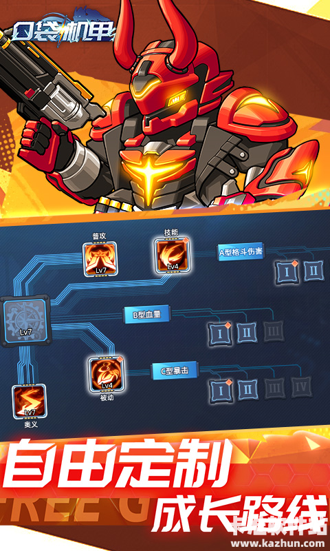 2、不仅可以升级机甲装备:更换更强力的武器,安装附加装甲,升级动力核心;还要培养机师能力;