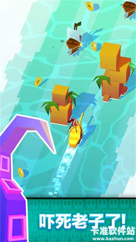 该游戏的操作是采用了点触控式设置,清点游戏屏幕即可让海盗王前进,而左右滑动即可变换行动方向,但不能后退,否则你将粉身碎骨,并且只要你点击的屏幕够快,那么海盗王的移动速度也是变快,这对于游戏中的各大陷阱通过是之至关重要的。