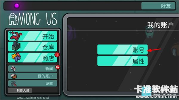 1、玩家进入游戏主页面,可以进行设置、查看好友、仓库、商店等,点击我的账户;