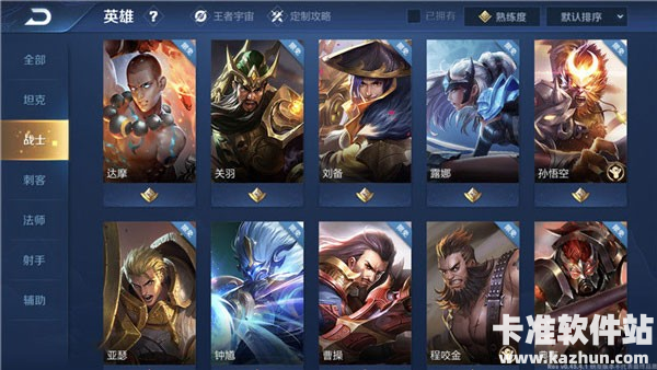 战士(Warrior),属于近战英雄,战士分为突进英雄、防御英雄、团控英雄等,防御性英雄的自带血量和防御都高,在游戏中可作为半肉半输出,团战时,可以吸收敌方英雄的伤害,又可以造成一定量的伤害。突进英雄一般具有较强的灵活性,具有一定的位移技能,具有生存能力和攻击能力强的特点,此类英雄以攻击装和攻速装为主,团战时攻击敌方后排英雄或脆皮英雄。团控英雄一般具有团控的技能,偏向于防御英雄,团战时,冲入敌方人群中,用团控技能短暂性控制住敌方英雄,为己方英雄输出制造环境。主战士类英雄有吕布、曹操、赵云、孙悟空、花木兰、宫本武藏、露娜等。