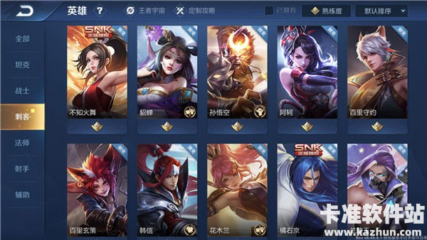 刺客(Assassin),属于高爆发、收割类英雄,此类英雄的特色是,前期发育,支援收割,后期切后排,秒脆皮英雄,刺客类英雄以出攻击装为主,团战时以偷袭和收割为主,刺客自身的防御较低,团战时应尽量避免被控制和集火攻击。主刺客类英雄有韩信、荆轲、兰陵王等。