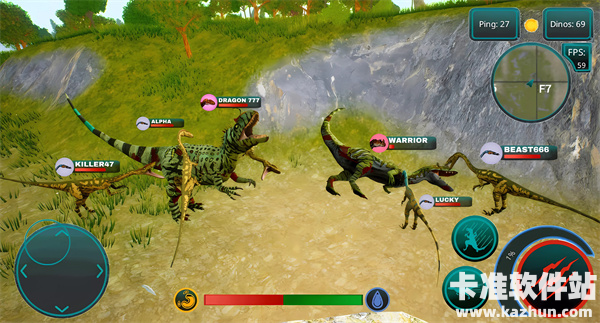 2、核心冲突:玩家所操控的恐龙必须在资源有限、天敌环伺的环境中求生,同时面对其他野生恐龙、敌对玩家甚至自然灾害的威胁,形成“弱肉强食”的生存法则。