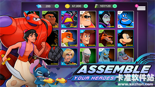 2、米老鼠、唐老鸭等全面收录,人气角色自由养成,开启激情大乱斗;