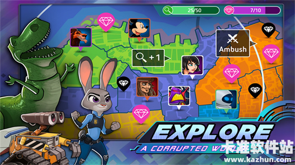 1、收集并使用 25 位迪士尼与皮克斯英雄作战