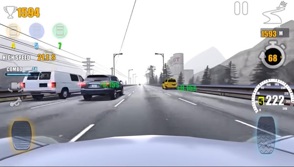 3、在游戏中,加速是关键,尤其在空旷路段保持高速行驶,不仅能节省时间,还能获得额外加分。当速度达到100km/h或以上,与其他车辆擦肩而过时会有额外奖励,但若减速则需重新计分。