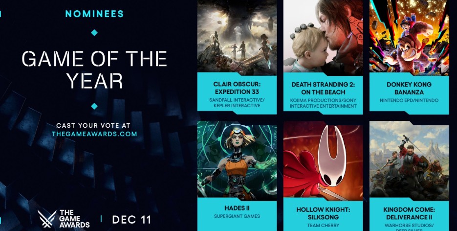 2025TGA所有提名已公布,2025年最佳年度游戏光与影:33号远征队;最佳家庭游戏为咚奇刚:蕉力全开;最佳电竞游戏是CS2;最佳移动端游戏赛马娘PrettyDerby;最佳独立游戏光与影:33号远征队;最佳动作游戏哈迪斯2;最佳格斗游戏饿狼传说:群狼之城;最受期待游戏GTA6;最佳动作冒险游戏空洞骑士:丝之歌。完整的各个奖项下的获奖游戏内容见下文!