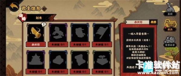 重点还是君主藏品,首先是最重要的金色藏品赤伏符,获得步兵武将刘秀。终于不是骑兵了,离我的全君主金武队又近了一步。拥有兵法天选之人:刘秀格挡提升20%。使用卡牌时:概率召唤陨石对全体敌军造成范围伤害。召唤陨石的伤害可观但概率比较低,可以搭配过牌刷卡的阵容,来提升陨石收益。