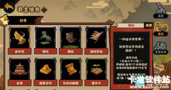 然后是紫色藏品铜马,归墟对决专用,刘秀可以作为君主出战。这个就不纸上谈兵了,等王上们实战测试之后自有分晓。