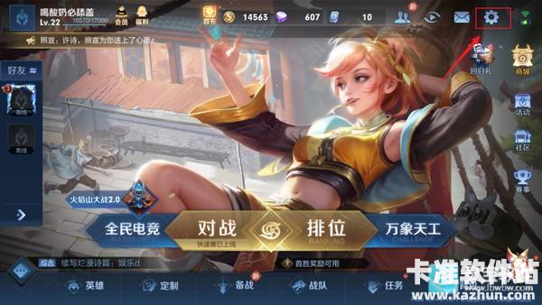 1、进入游戏后,在游戏主界面点击右上角设置按钮