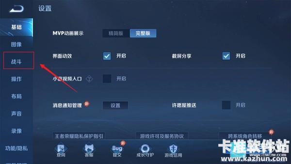 3、最后在战斗设置界面,将视野范围提示开启以及视野提示程度调到最低即可