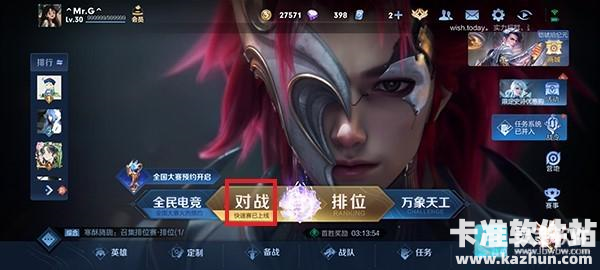 1、打开王者荣耀手游,进入到大厅界面,点击“对战”选项;