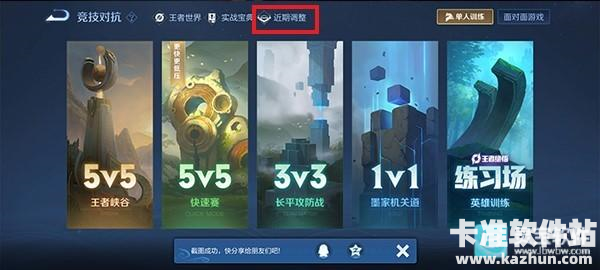 2、进入到竞技对抗页面,点击上方的“近期调整”按钮;