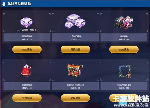 3、紧接着咱们往下滑,可以看到体验币兑换奖励,小伙伴们根据自己喜好选择喜欢的就行