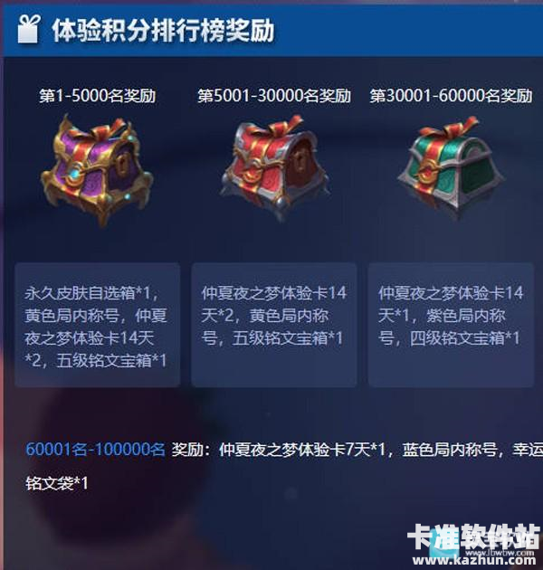 温馨提示:体验积分高的还可以获得免费称号以及永久皮肤自选宝箱哦