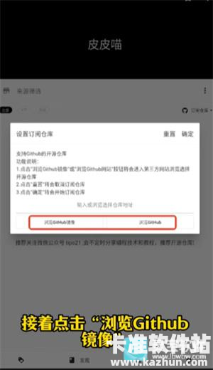 4、在设置订阅仓库窗口,选择【浏览GitHub镜像】,因为GitHub主站对网络环境要求比较严格,有时候会打不开