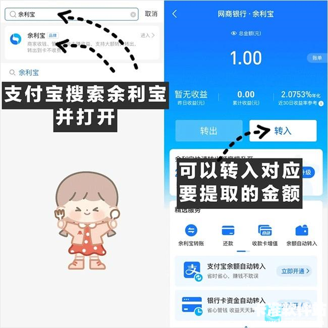 1、进入余利宝界面,余额宝从转到余利宝中