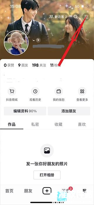 2、进入我的主页,点击右上角的【三横】图标;