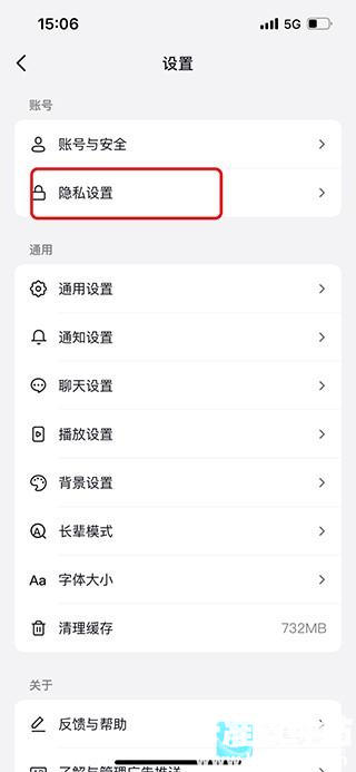 4、进入设置界面,点击【隐私设置】选项;