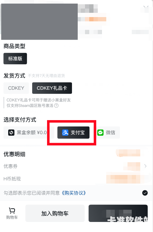 1、购买游戏时可以看到cdk礼品卡选项